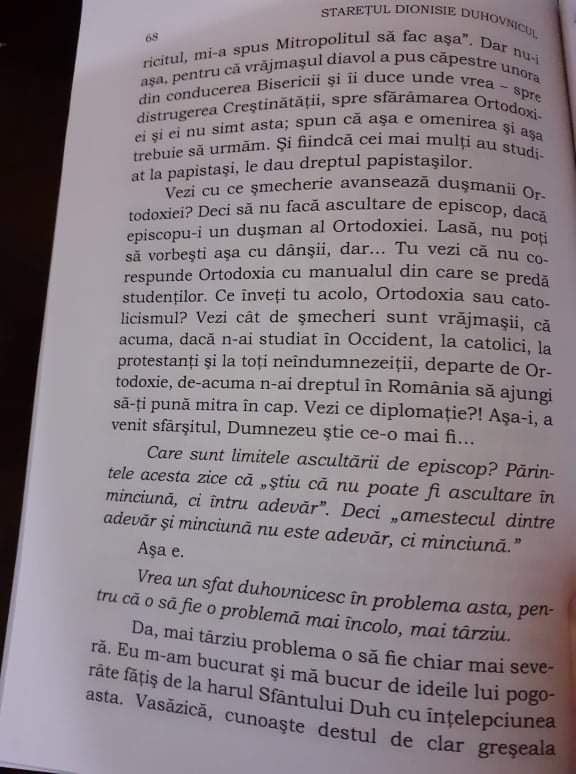 Staretul Dionisie. Erezii, manuale, „ascultare”, constiinta, necredincios, studierea la papistasi, sa NU FACA ASCULTARE de dusmanii Orthodoxiei, minciuna, adevar, ecumenismul, astronomul Arie, mincinosi, minuni, sa suferim, Marturisirea, „afumati”, sa evite plecarea, dusmanul Orthodoxiei, inaltare cu mintea nu mai judeci dupa adevar se intuneca mintea, adaptam, apropiem, inchistati, Alexandru carbunarul, adevaruri venite de la lume amestecate cu minciuni